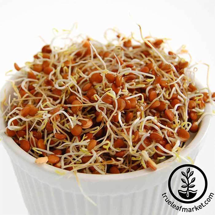 Organic Lentil sprouts are high in fiber, protein and amino acids, vitamins A, C, B complex and E, iron, calcium and phosphorous. Raw organic red lentil sprouts can have a mild peppery flavor. Organic red lentil sprout seeds make a good substitute for celery or green pepper in salads, soups and vegetable combinations. Red lentils are great in lentil soups, Indian recipes or anywhere you would use lentils.