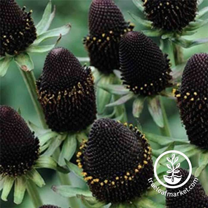 91 – 105 days. Green Wizard rudbeckia seeds grow one of summer's most unique and exclusive blooms boasting 3 – 5” black 'rayless' coneflowers. Green Wizard seeds are an exciting and fascinating substitute in the flower bed for the traditional golden yellow rudbeckia. Green Wizard rudbeckia seeds are an ideal grow amongst wildflower mixes, untamed meadows, and wide open spaces. Green Wizard rudbeckia is native to the wet, high mountainous regions of the American west and is a vigorous performer in cool, moist, yet sunny gardens. 100 seeds.