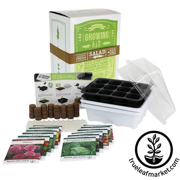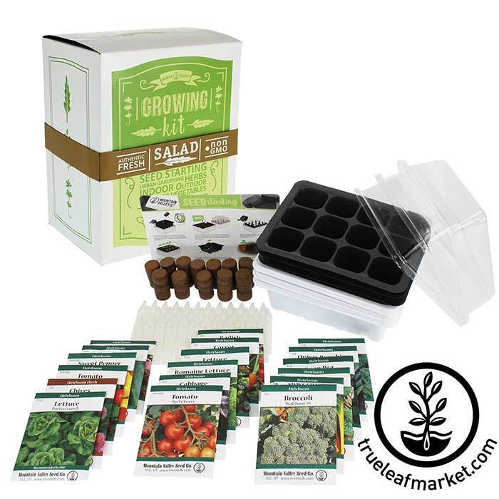 Start your own salad garden seeds indoors and get a jump on the growing season. Also perfect for transplanting to indoor planters for year-round container gardening. Cultivate your own fresh, lettuce and other salad vegetables and enjoy the fun and benefits of indoor gardening. Seed Starter Kits make fantastic gifts. The Salad Starter Kit includes: Beautiful Giftable Box, trays, humidity dome, seed label sticks, compressed soil pucks (just add water), easy to follow instructions, and an assortment of salad garden seeds (enough for multiple plantings).