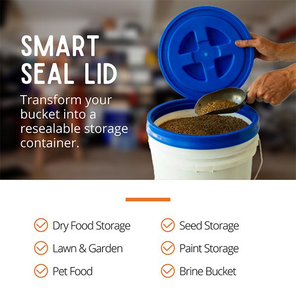 • Smart Seal Lid Bucket Lid - The Handy Pantry Smart Seal Lid transforms any 3.5, 5, 6, or 7-gallon bucket (with 12\" diameter) into the ideal storage container.