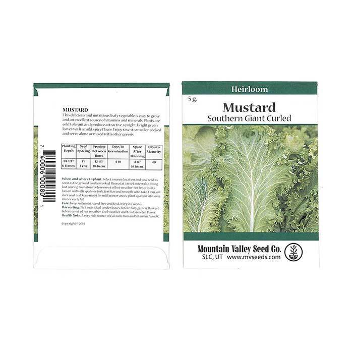 A cousin to kale and collards, mustard is a tenacious leafy green but it's not as cold-hardy. Grow in clumps about 12-18 inches apart. Use straw mulch to hold in soil moisture. Start 4-6 weeks before the first frost for a fall harvest. For a spring harvest, start seeds 4 weeks ahead of the last frost. You can harvest and allow to regrow over a period of a couple weeks as long as the weather permits. Cut leafy greens 3-4 inches from the ground and allow sufficient time to regrow.