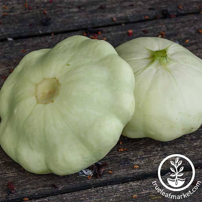 54 days. Pale green, rather flat fruits are scalloped, 7 inches across and 3 inches deep. These change color to a creamy white when mature. Very popular in the south-eastern states. Approx. 280 seeds/oz.