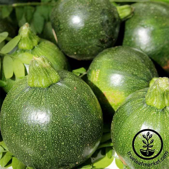 55 days. AAS Winner for 1999. The first round summer squash. Dark zucchini skin with a unique round shape, somewhat lighter green streaks, smooth and shiny skin with great buttery taste. Commonly used for stuffing edible, savory foods into its cavities. Improved for earliness. Can be harvested in about 5 to 6 weeks. Plants grow to 3 feet wide. Approx. 265 seeds/oz.