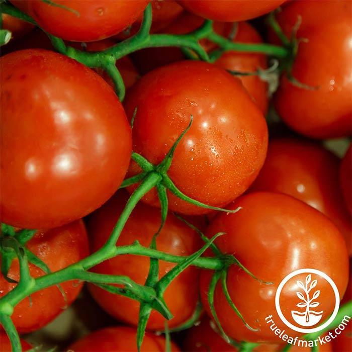 72 days. Sturdy, compact, indeterminate vine produces loads of fine quality medium to large tomatoes. Bright red fruits are low acid, quite free from cracks and scars. They are firm and hold up well in handling. V, F. Approx. 10,500 seeds/oz.