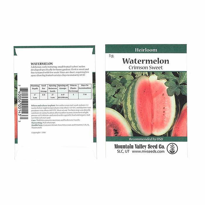 80-90 days. Non-GMO Crimson Sweet Watermelon Seeds. Crimson Sweet Watermelon (Citrullus lanatus), is a bold favorite among avid watermelon growers. A 15-20 lb. fruit with a very fine and sweet texture.