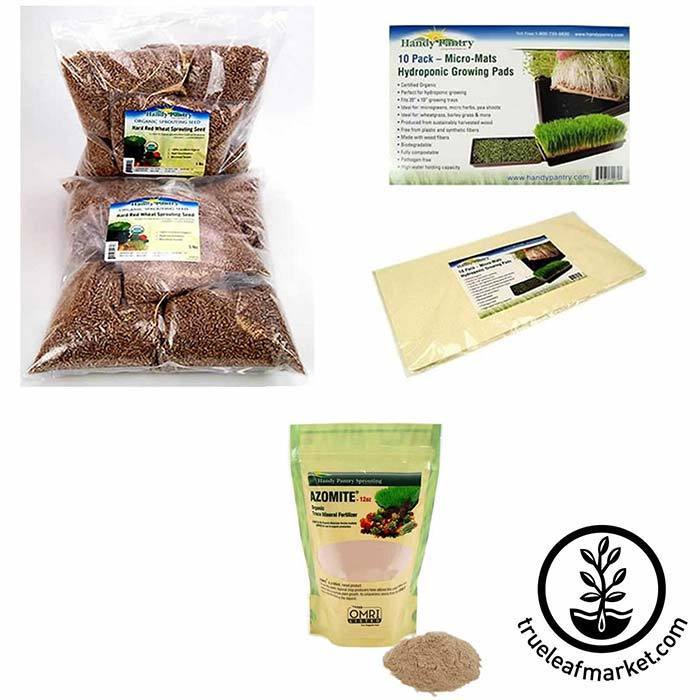 Convenient 10 pack refill kits for both soil based and hydroponic based wheatgrass growing. Includes grow medium, wheatgrass seeds, and azomite. Certified Organic.